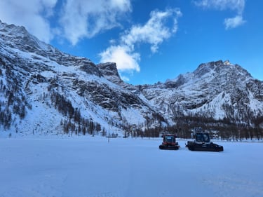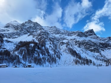 Il percorso: l'Alpe Devero è una splendida località alpina di alta quota. Andremo ad esplorarla con le ciaspole camminando sulla neve fino all'omonimo lago situato a circa 3 km di distanza. Una volta raggiunto il lago continueremo un percorso ad anello che ci riporterà alle auto.