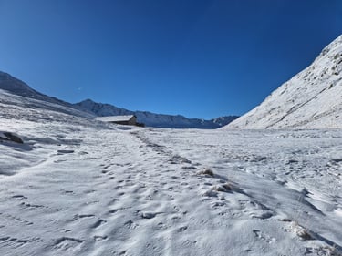 Il percorso: una ciaspolata in Svizzera, partendo dal Passo del Lucomagno sul confine fra il Canton Ticino e il Canton Grigioni. Dalla partenza costeggeremoi inizialmente il lago Santa Maria per poi addentrarci nella valle che ci porterà al Passo dell'Uomo. Dal Passo continueremo la nostra salita fino ad arrivare al laghetto Scai.